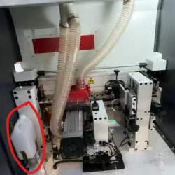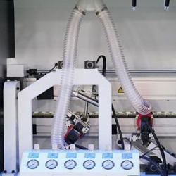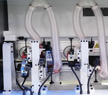 Na wyjściu okleiniarki znajduję się drugi system płynnego czyszczenia krawędzi.