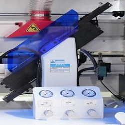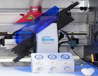 506 RL posiada 2-grupowy automatyczny system podawania 4 rodzajów okleiny. 2 klej EVA / 2 klej PUR.