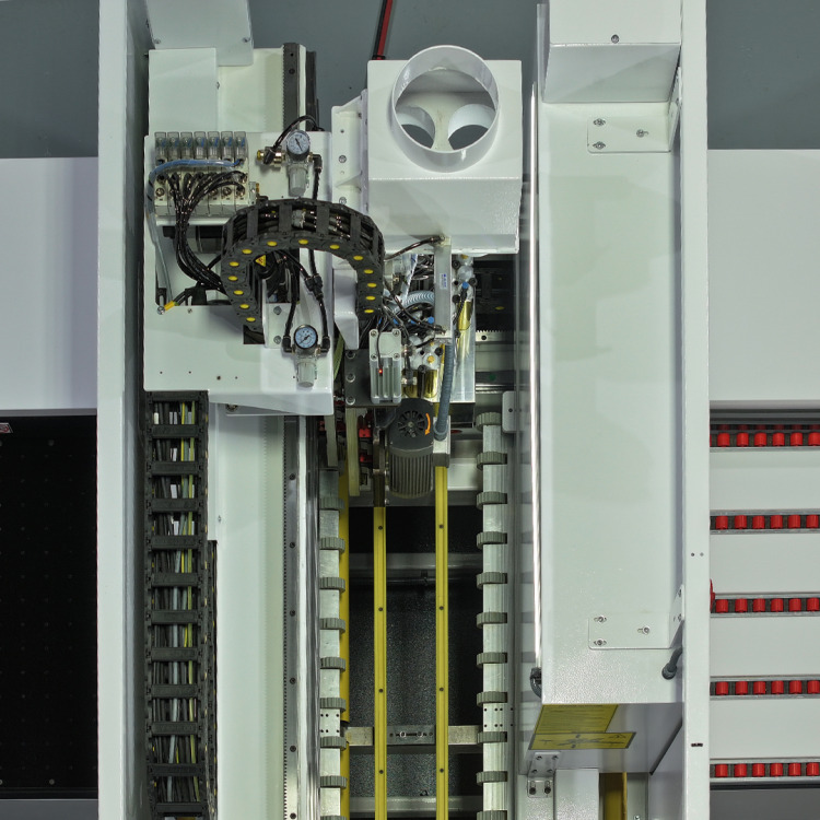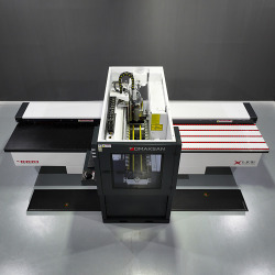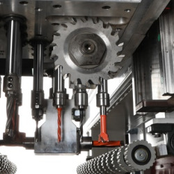 Maszyna Holemaster 4000 X Line HS została zaprojektowana specjalnie z myślą o eliminacji strat czasu w produkcji mebli. Sercem maszyny jest wysokowydajny zespół wiertarski, składający się z 8 wierteł pionowych, 6 poziomych oraz 1 piły. Dzięki 3-osiowej technologii serwomotorów, zespół ten wykonuje wiercenia na wszystkich czterech krawędziach i górnej powierzchni elementu z maksymalną prędkością.