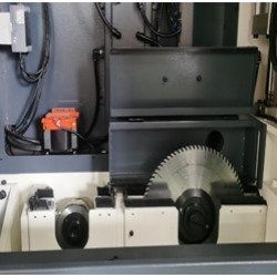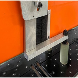 Piła panelowa HP 280 posiada system wyrównywania bocznego, który zabezpiecza szerokość panelu, zapobiegając jego przesuwaniu się lub drganiu podczas cięcia, zapewniając precyzyjne cięcie na szerokość. Nacisk można regulować w zależności od grubości, wagi i materiału panelu, co zapewnia precyzyjne wymiary cięcia.