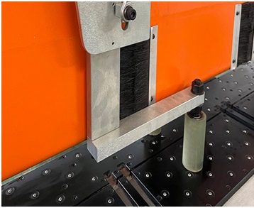 HP 280 jest wyposażona w 8 pneumatycznych chwytaków i charakteryzuje się wiodącą w branży dwupalcową konstrukcją zaciskową. Panele są zaciskane za pomocą cylindra pneumatycznego przed podaniem i przechodzą przez przenośnik rolkowy, co zapewnia precyzyjne cięcie. System ten mocno chwyta panele, znacznie zmniejszając pracochłonność i znacząco poprawiając wydajność produkcji.