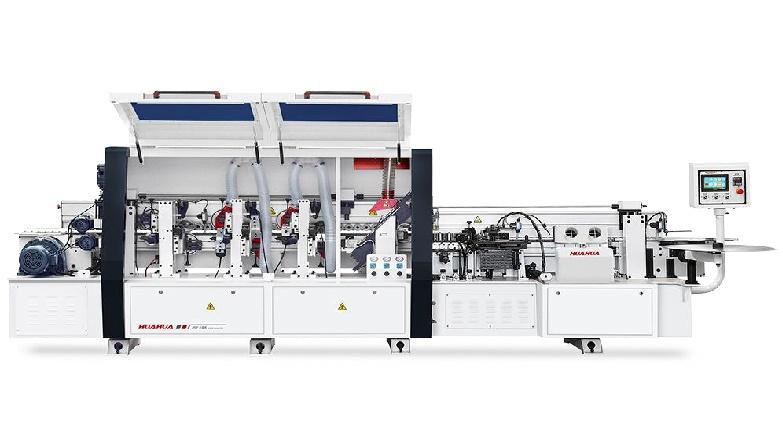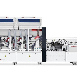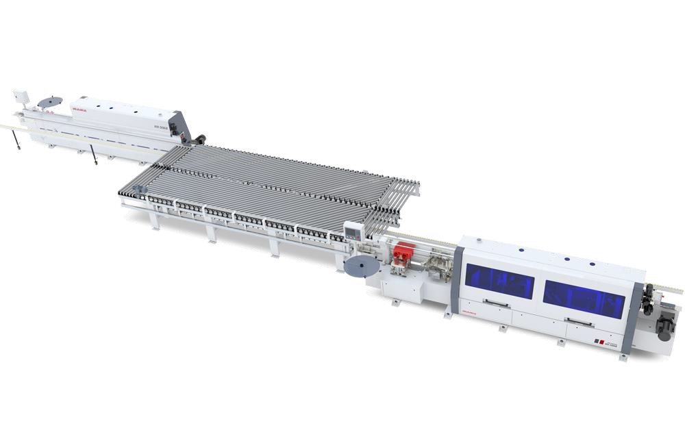 Dwie okleiniarki: HH 506 do oklejania krawędzi z rolkami po lewej i prawej stronie znacznie podwajają wydajność oklejania.