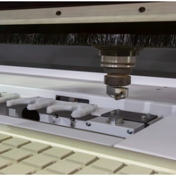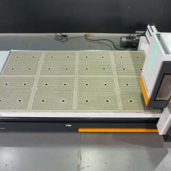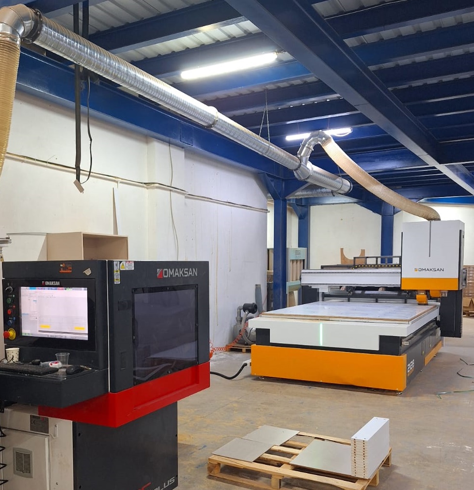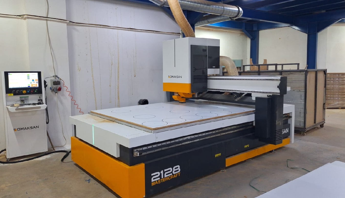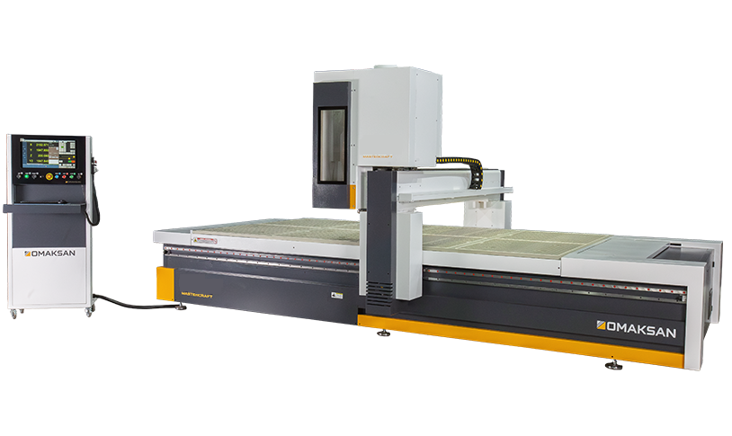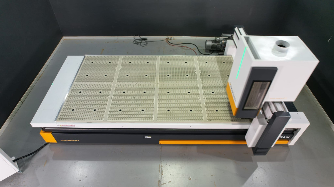 Maszyna Omaksan Mastercraft 2128 posiada obszar roboczy 2100 mm x 2800 mm i 6 stref próżniowych, co zapewnia wysoką wydajność odkurzania. Stół roboczy maszyny wykonany jest z grubego polipropylenu i posiada automatycznie sterowane aluminiowe tłoki na osiach X i Y. Tłoki referencyjne zapewniają precyzję i maksymalną częstotliwość referencyjną.