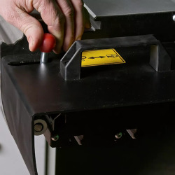 Maszyna została zoptymalizowana do pracy z podcinakiem stożkowym o średnicy 125 mm. Układ ten posiada łatwo dostępne mechaniczne pokrętła regulacyjne, które umożliwiają regulację wysokości i osi bez luzów. To ważna cecha przy cięciu płyt laminowanych i innych materiałów wymagających czystej krawędzi, ponieważ właściwe ustawienie podcinaka ogranicza ryzyko wyszczerbień od spodniej strony materiału.