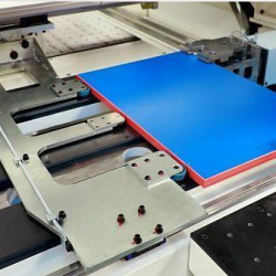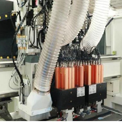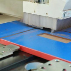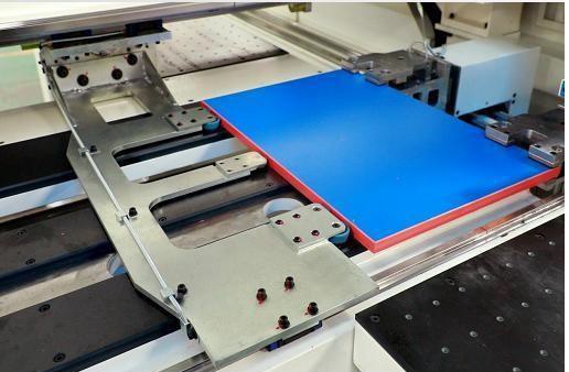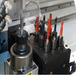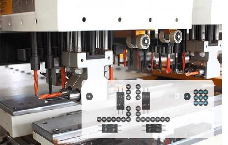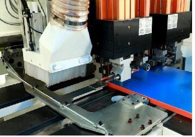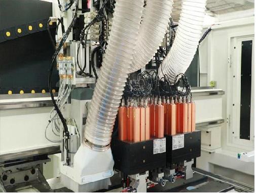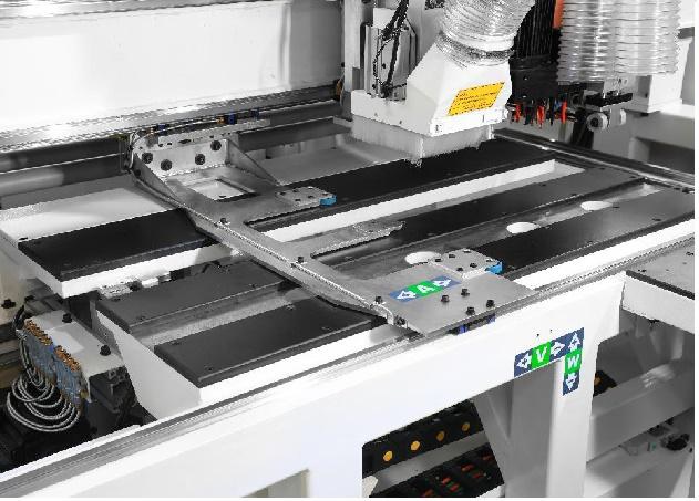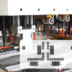 Maszyna cnc posiada jednostkę wiercenia dolnego, która składa się z 9 wierteł pionowych.